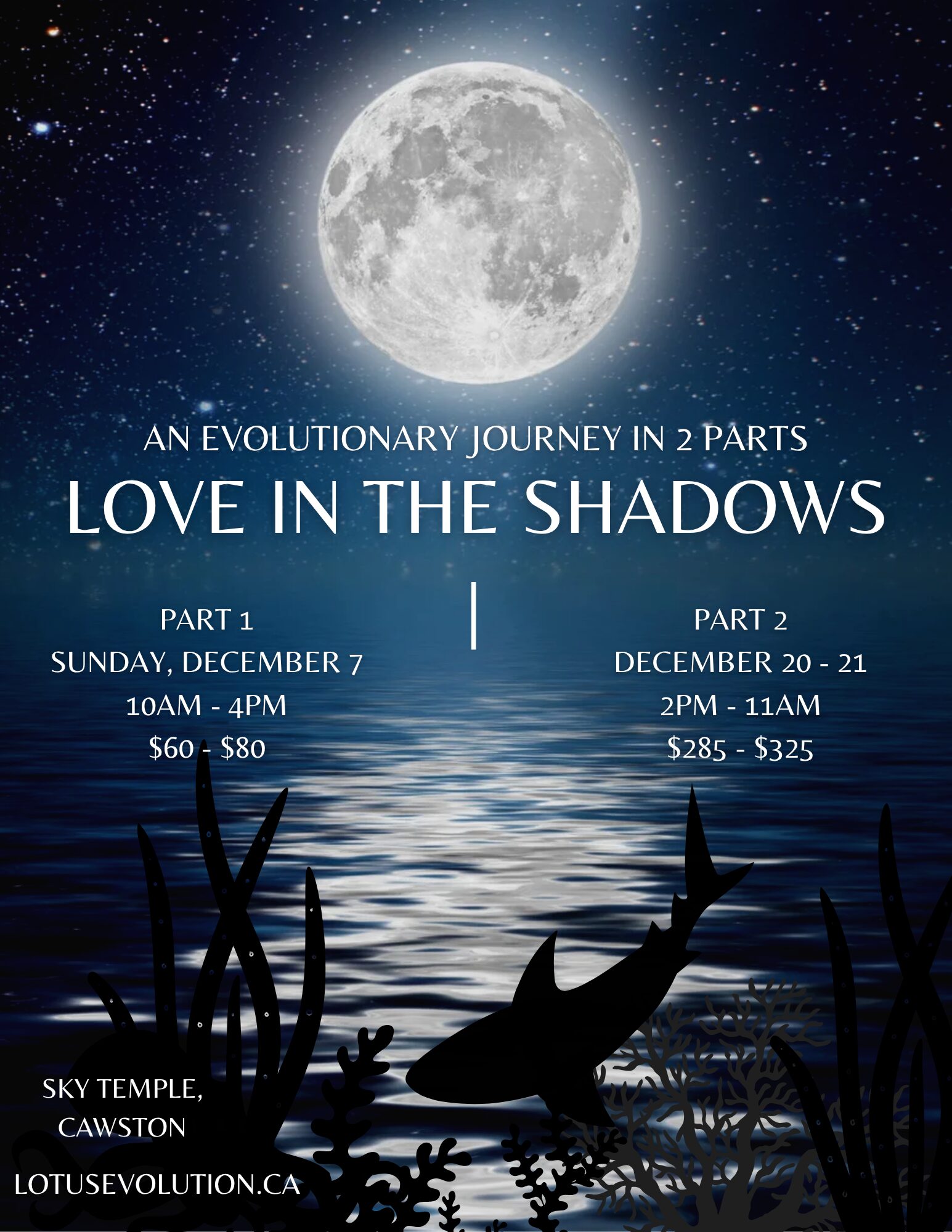 LOVE IN THE SHADOWS: Evolutionary Journey in 2 parts Deep Work in Dark Waters. While it is not essential that you do both parts, it is highly recommended. Part 1: Healing Our Shadow When you are One with your Shadow, there is nothing to fear. Sunday, December 7th, 2025 The Yurts, Cawston 10am - […]